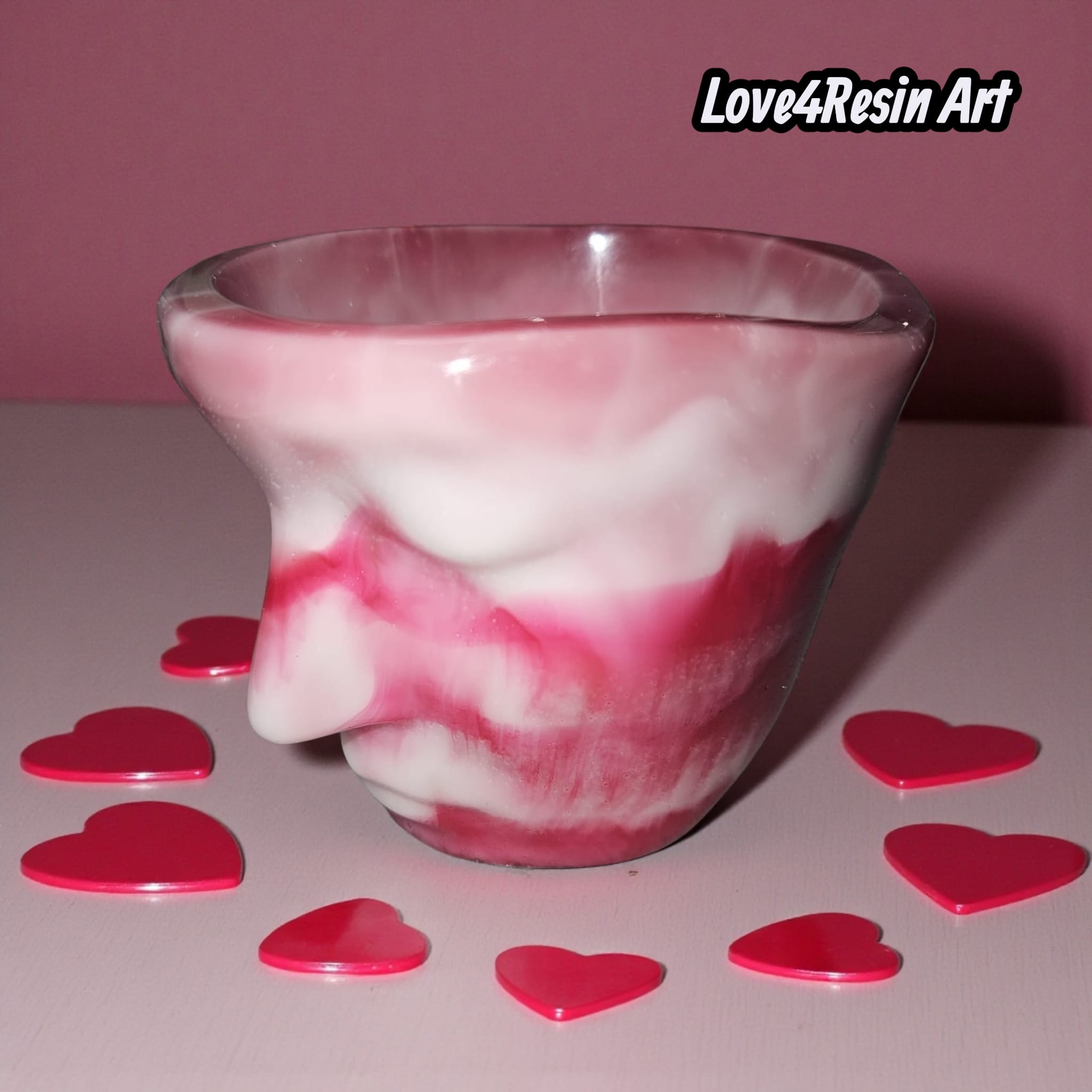 Pe masă, aburul cafelei se ridică lent dintr-o cană roz, delicată, cu nuanțe care par pictate din emoții — exact ca iubirea: uneori calmă, alteori intensă, dar mereu caldă. Cana se așază pe suportul în formă de buze, ca o promisiune nerostită: o zi bună începe cu un strop de iubire.