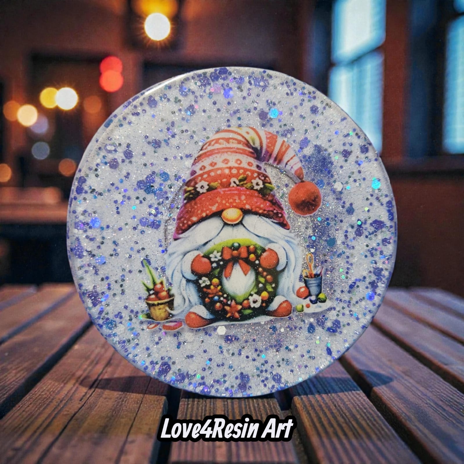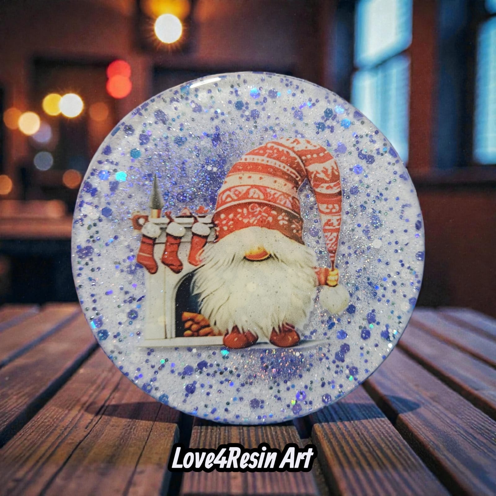 Personajele centrale – gnomii de Crăciun, jucăuși și protectori ai casei – aduc un aer nordic, cald și nostalgic. Bărbile lor pufoase, căciulile decorate și detaliile atent alese creează o atmosferă intimă, ca într-o cabană luminată de focul din șemineu. Accentele de glitter albastru și argintiu dansează în lumină, oferind profunzime și un farmec vizual aparte fiecărei piese.