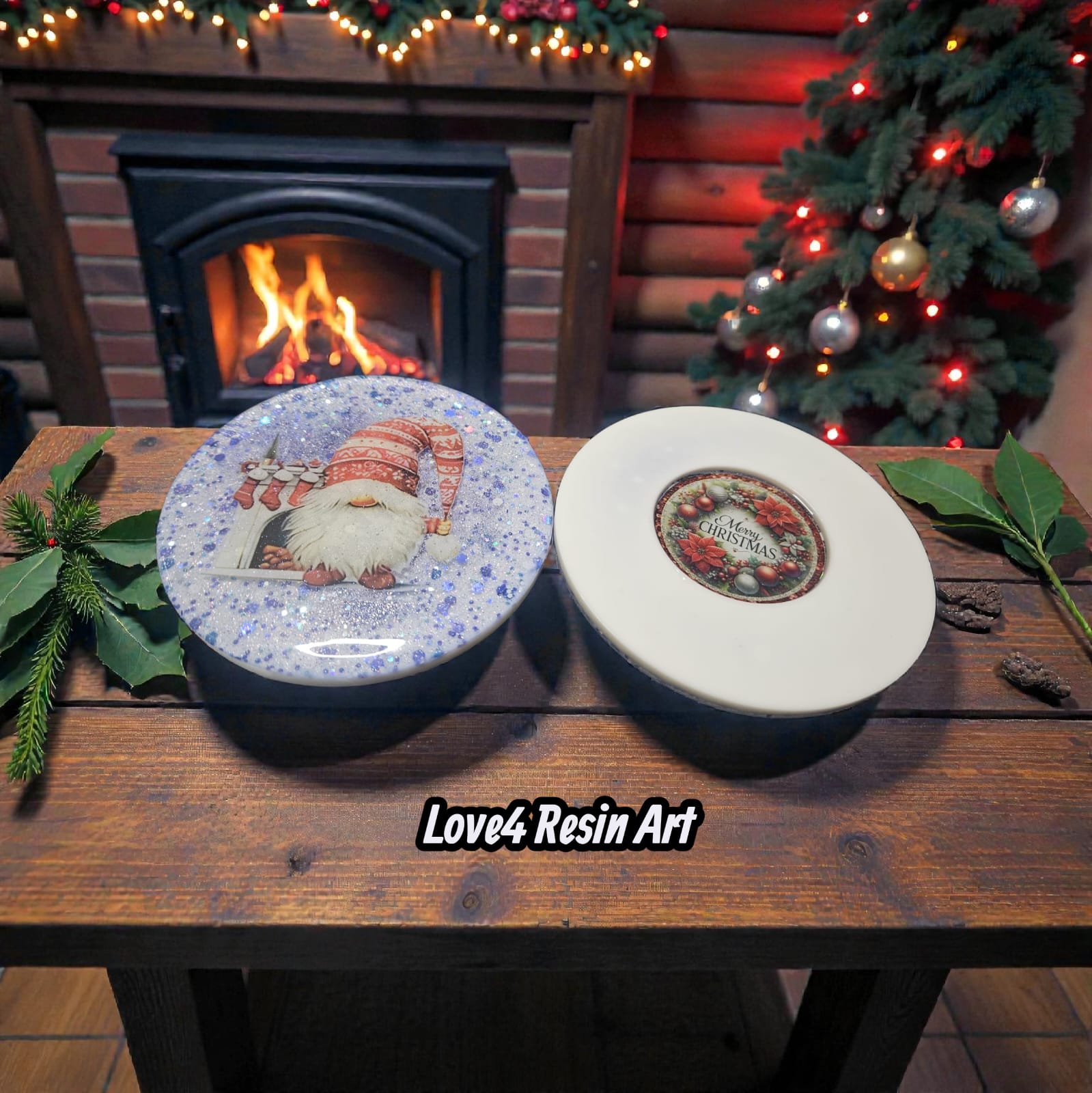În lumina caldă a sărbătorilor, acest set de coastere pentru Crăciun spune o poveste despre liniște, magie și bucuria lucrurilor făcute cu suflet. Fiecare piesă este o mică scenă festivă, surprinsă în rășină transparentă, presărată cu sclipiri fine ce amintesc de fulgii de zăpadă într-o seară liniștită de iarnă.