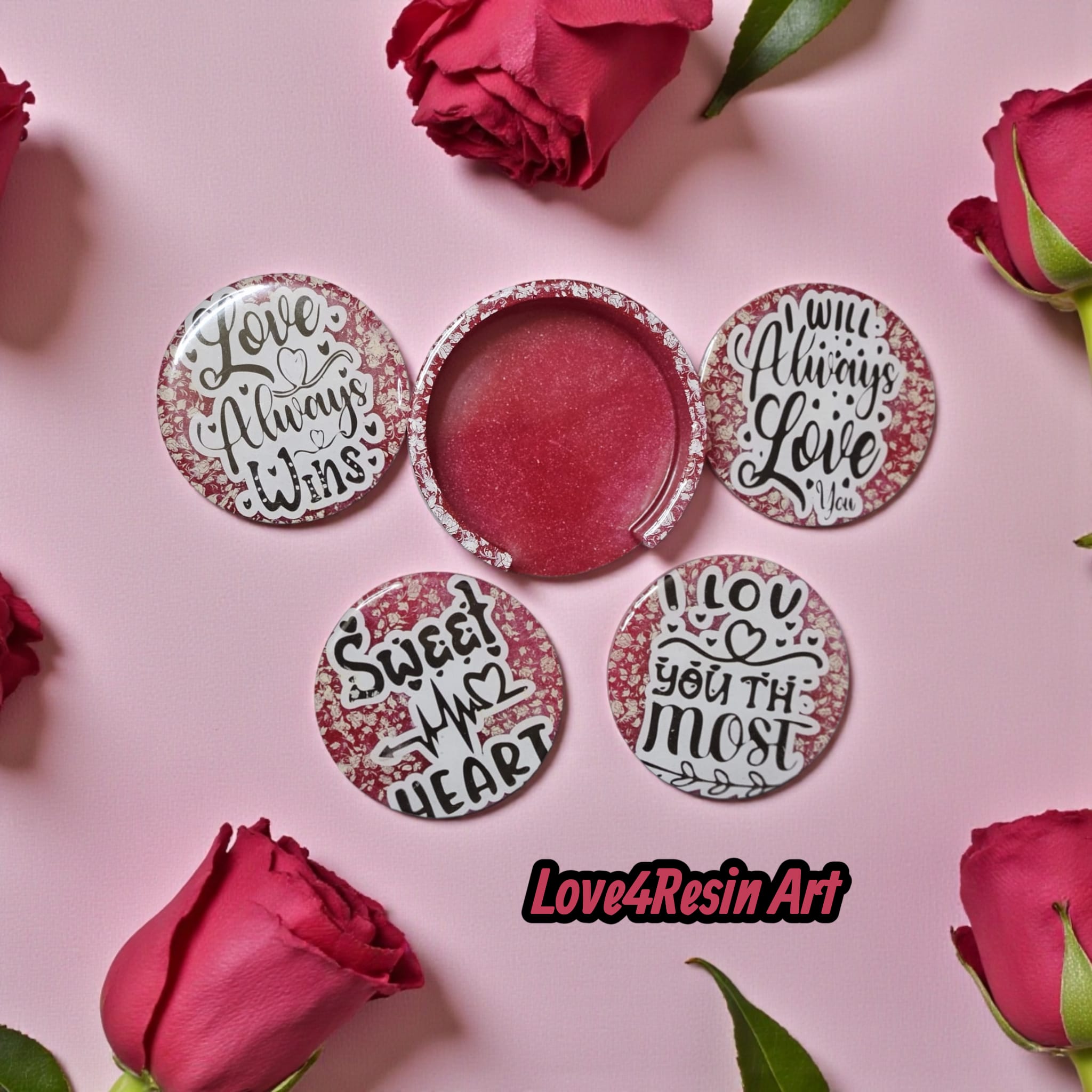 Acest set de suporturi pentru pahare este creat pentru acele gesturi care spun „contezi pentru mine” fără să fie nevoie de explicații. Fiecare piesă transmite un mesaj diferit — Love Always Wins, I Love You the Most, Sweet Heart, I Will Always Love You — transformând obiectele de zi cu zi în mici mesaje personale.