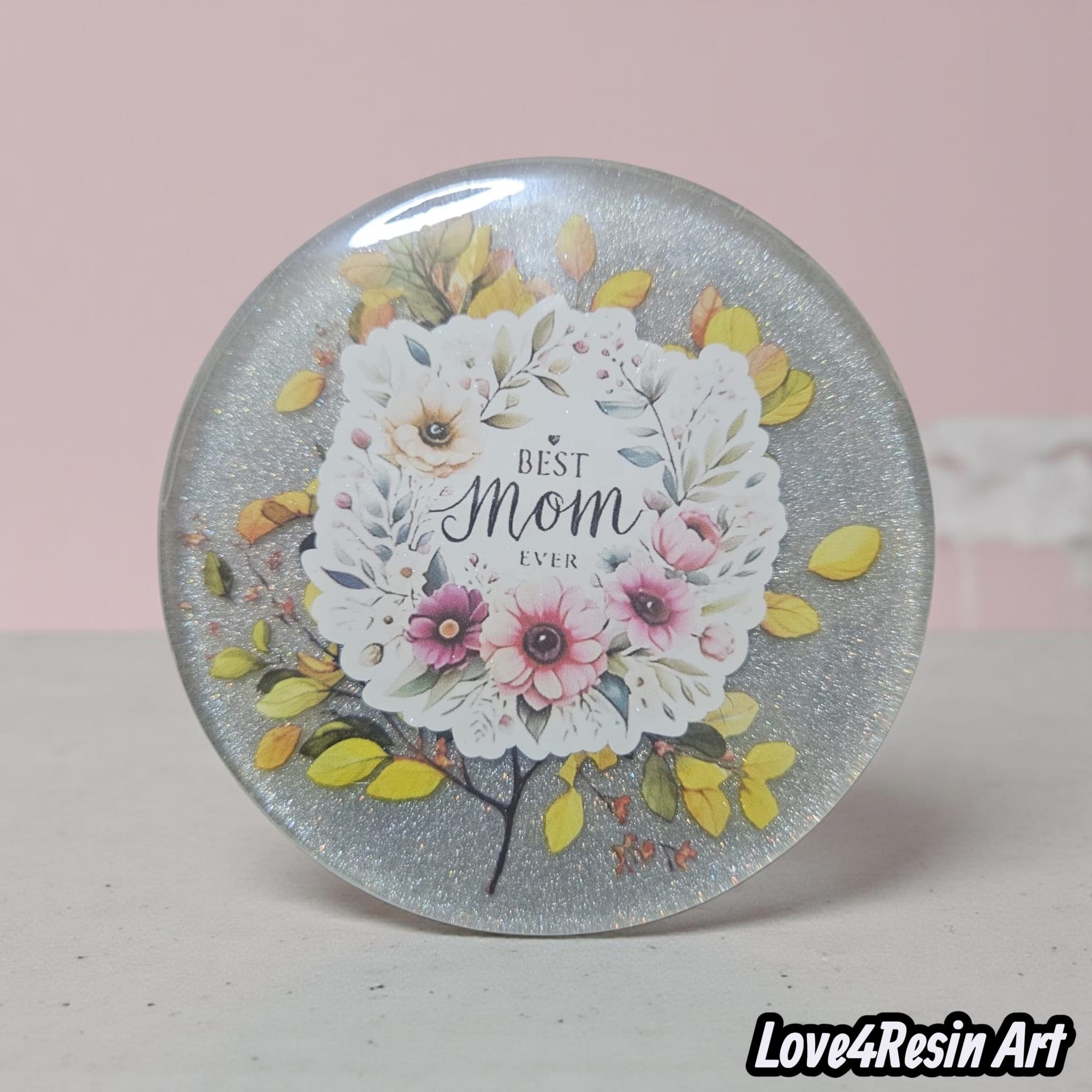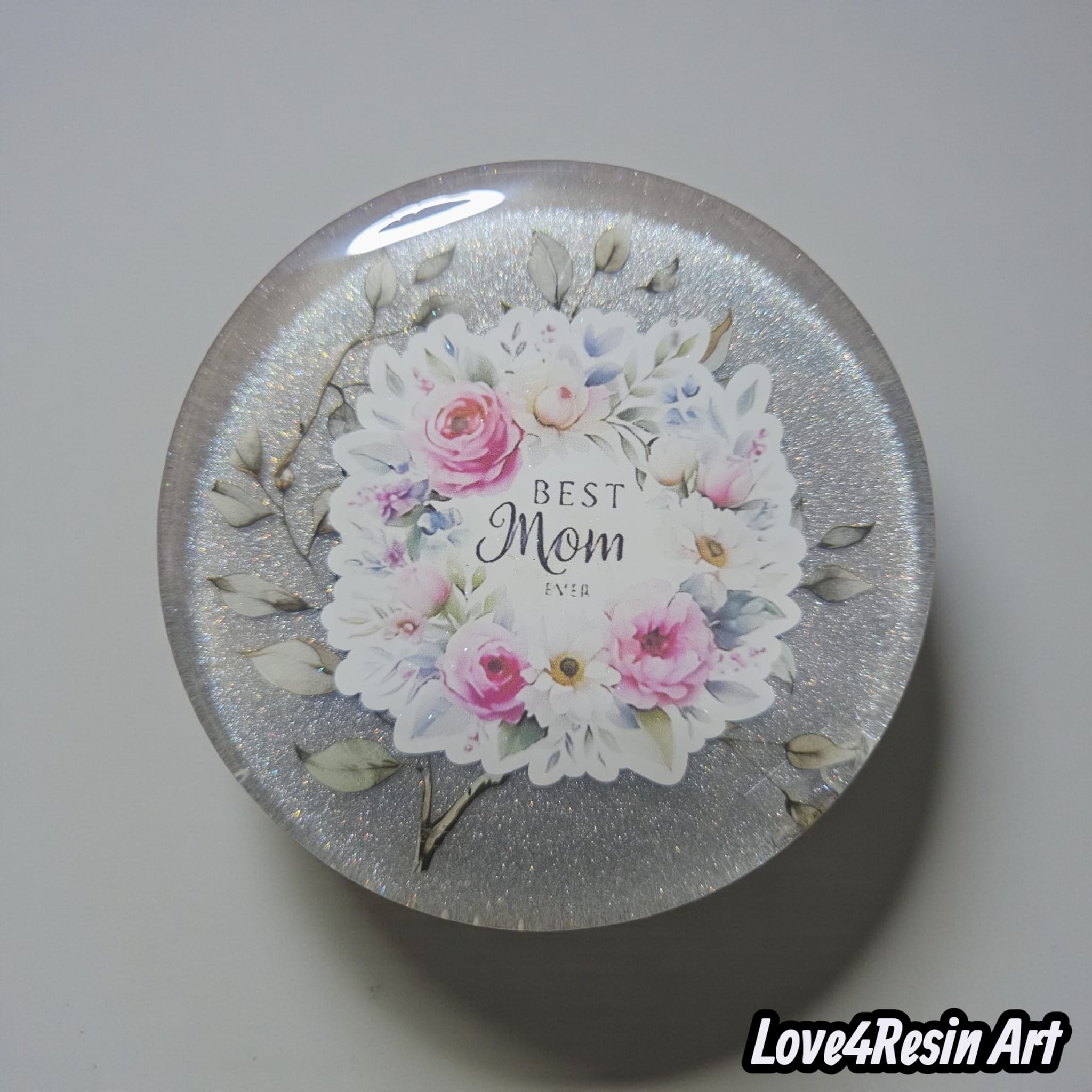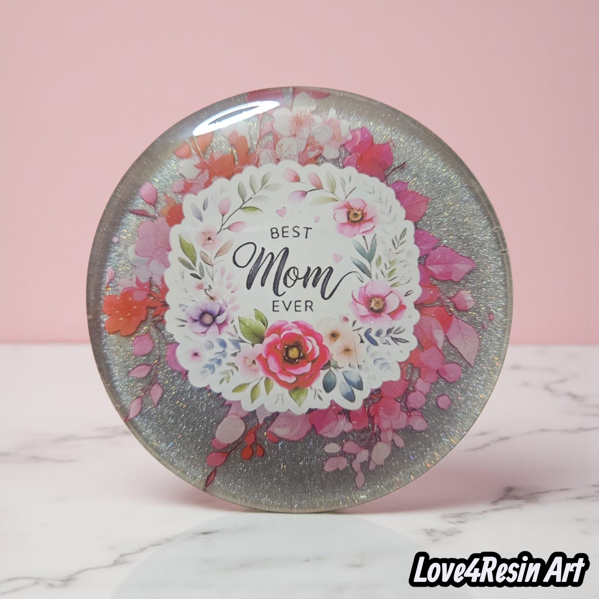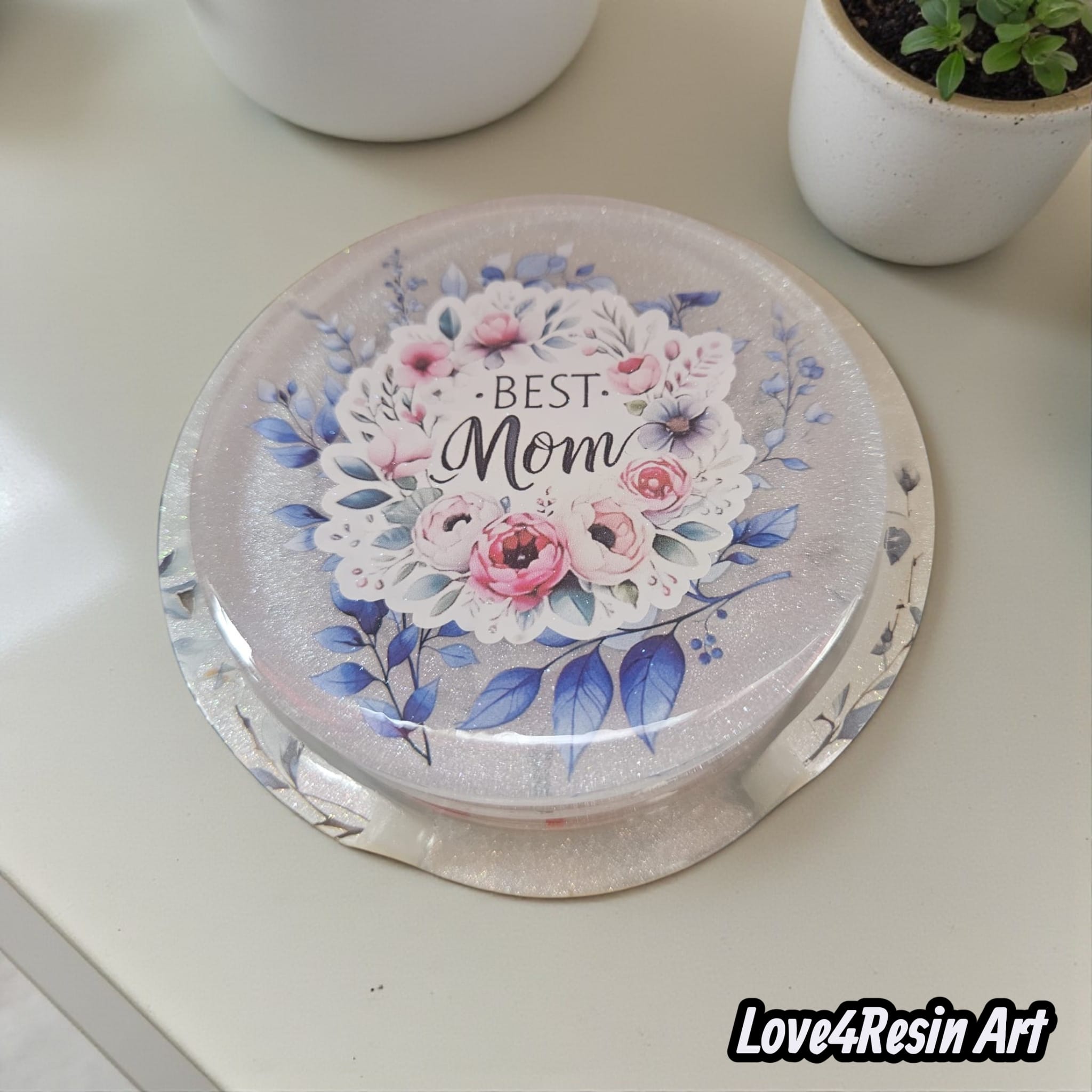 Setul de suporturi pentru pahare „Best Mom Ever” nu este doar un obiect decorativ – este o declarație de iubire turnată în rășină, cu migală și suflet. Fiecare piesă este realizată manual, cu un finisaj delicat, sidefat, care captează lumina și o transformă într-un joc subtil de străluciri. Designul floral, în nuanțe pastelate – roz pudrat, bleu delicat, verde cald – încadrează mesajul simplu și puternic: „Best Mom Ever”.Un mesaj care spune tot.