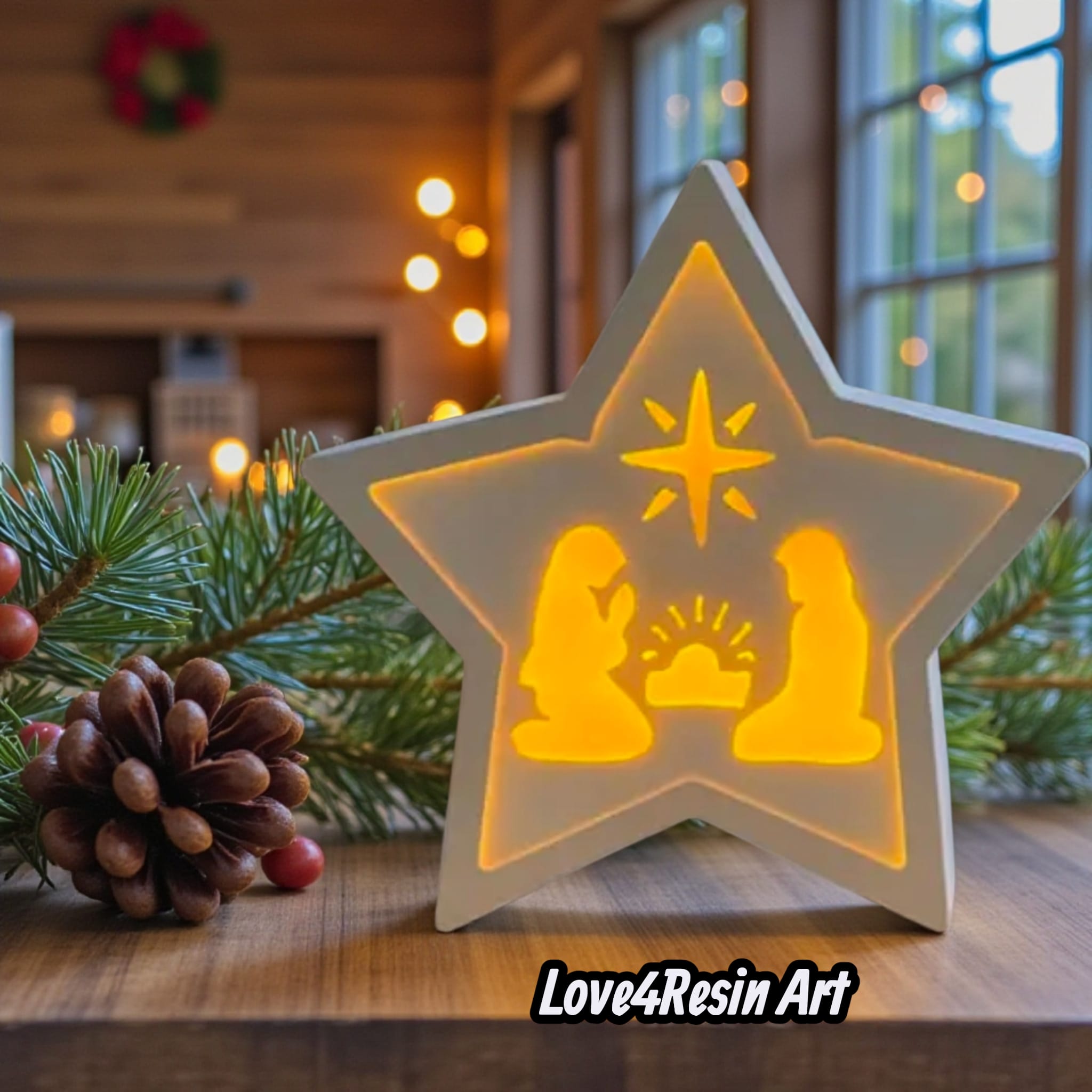 Această decorațiune nu este doar frumoasă. Este un simbol. În interiorul stelei, scena Nașterii Domnului prinde viață într-o lumină caldă, blândă, care nu obosește ochii, ci încălzește sufletul. Siluetele Mariei și ale lui Iosif, Pruncul luminat în centru și steaua de deasupra creează un moment sacru, simplu și profund, exact așa cum este Crăciunul adevărat.